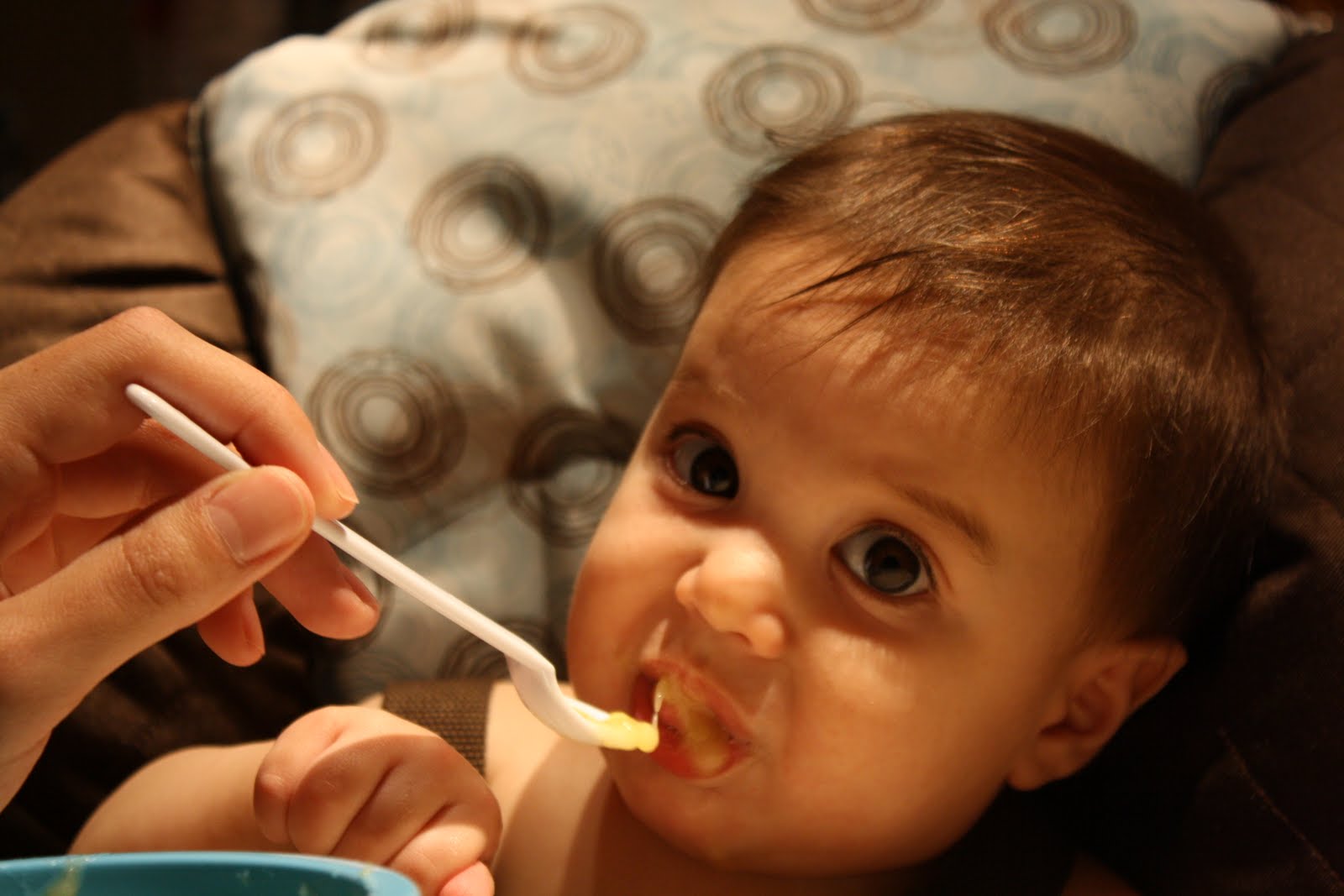He's a good size 3 in diapers, nurses in the morning and evening and gets 5.5 oz. bottles of breastmilk during the day, for a total of 4 1/2 to 5 feedings a day. We are trying solids today (a separate post to follow). We have somewhat established a bedtime routine which we try to start at 6:30. It begins with his bath, then we put on pj's, get one last feeding, read him a book, then we sing him his favorite songs (by no means, can either of us sing, but he doesn't seem to mind). We zip him up in his sleep sack and off to sleep he goes. Most of the time we put him down on one end of the crib and he wakes up on the other. Lately, it has been taking 20 minutes or so for him to give up and fall asleep, and he's almost always up before 7 in the morning. As for naps, every time we get a good nap thing going, something seems to throw it off, like daylight savings time. So I'm not going to comment on that.