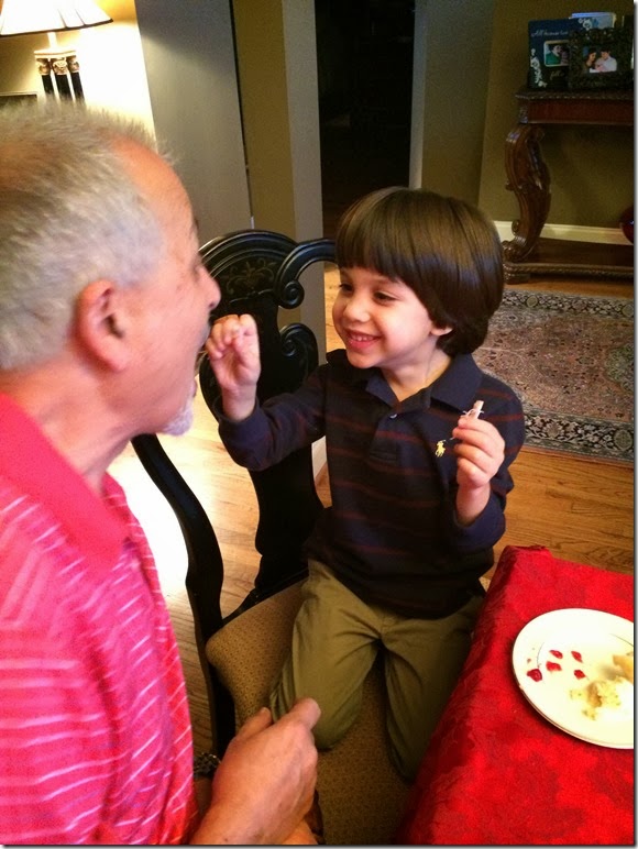 6. He saw his first ever theater movie yesterday! It was Frozen, which according to Nick bored him a bit and he is referring to as “The Princess Movie.” I guess it is geared more toward girls. On the bright side, he loved the previews and can’t wait to see How to Train a Dragon 2 (after he sees How to Train a Dragon, which lucky for him is coming on TV on Christmas)